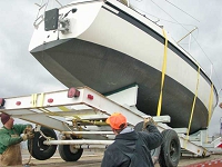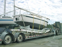 This morning I headed to the Canada/US border which is about 3 hours from our house. The plan was to meet Scott (of Walker Marine) at Noon in hopes of clearing customs quickly. I arrived at Customs a bit early and took a seat. As the clock hit 12:00 a large transport slowly made its way around the corner. I looked on in anticipation and finally... there it was. It was beautiful and it was almost home. I met Scott at his truck then went back inside to do the paperwork. To my amazement everything went quick and painless... well, it was somewhat painful to hand over my Visa card but other than that, we were on our way in about 20 minutes. At 3pm we arrived at Northern Harbour. Exactly 1 month to the day, our new boat was finally home.