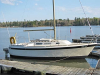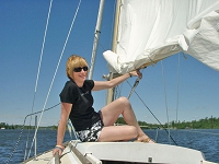 Now that sailing season is here, we have had quie a number of inquiries for our other sailboat "Cordon Bleu". This morning we finally said goodbye as it's new owners headed out on a long 2 day trip back home. I was sad to see it go but at least the day was hot and windy, allowing us to enjoy our new sailboat. My wife spent the day laying on the foredeck tanning (burning) while the girls helped me navigate from the cockpit. They are quite use to the heeling over and didn't seem to mind one bit!